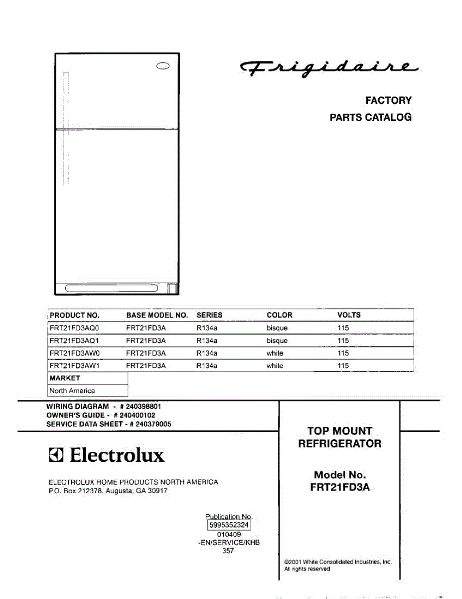 Parts for Frigidaire FRT21FD3AW1: 01 - Cover Parts