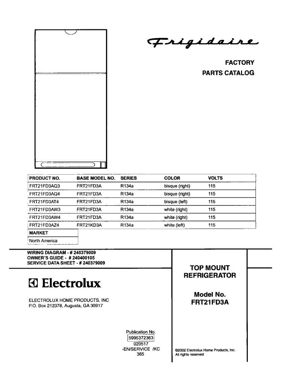 Parts for Frigidaire FRT21FD3AW4: 01 - Cover Parts