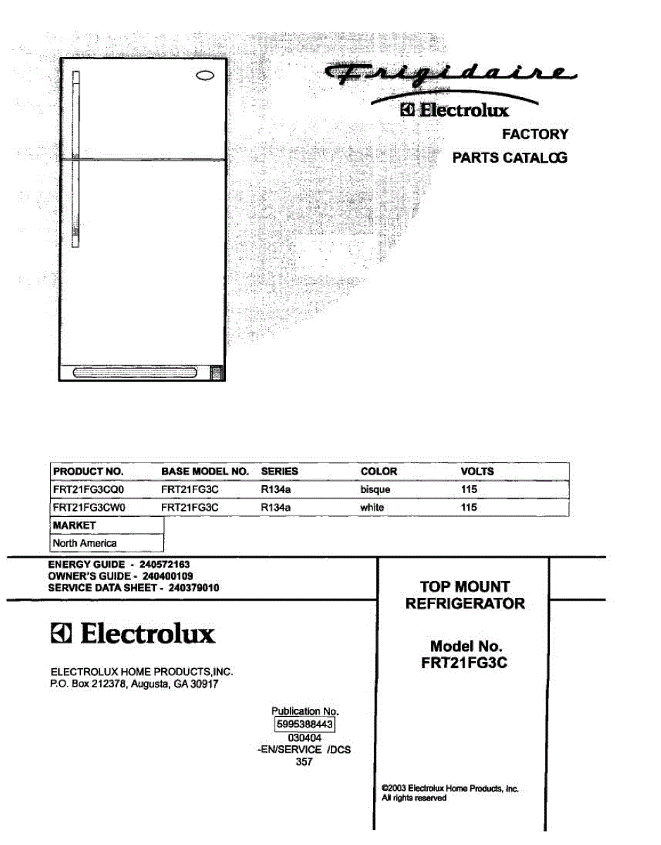 Parts for Frigidaire FRT21FG3CW0: 01 - Cover Parts