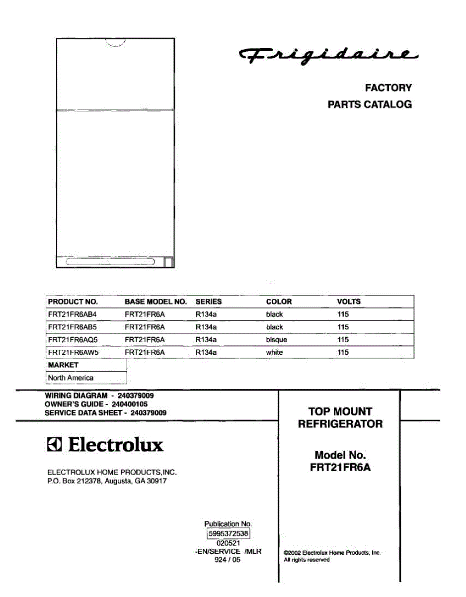 Parts for Frigidaire FRT21FR6AW5: 01 - Cover Parts