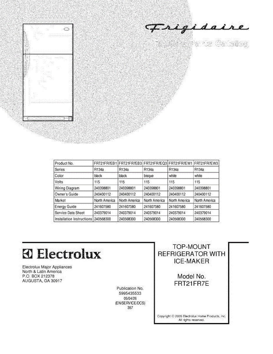 Parts for Frigidaire FRT21FR7EB1: 01 - Cover Parts