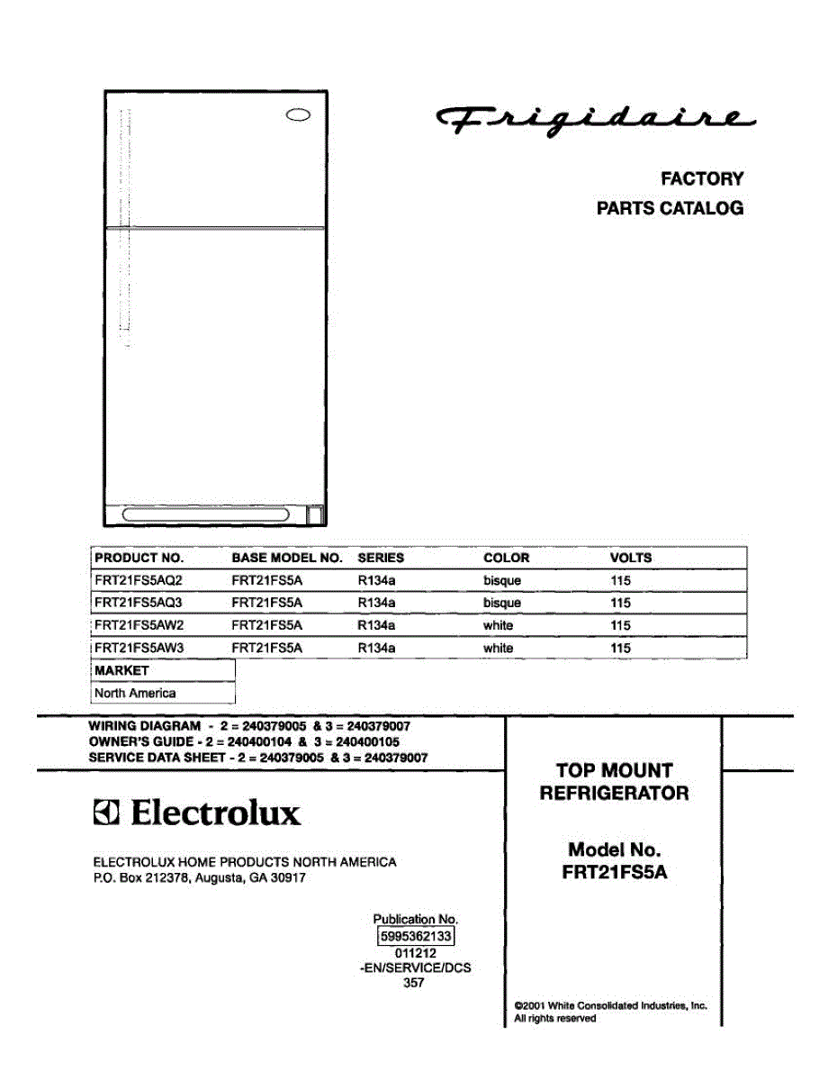 Parts for Frigidaire FRT21FS5AQ2: 01 - Cover Parts