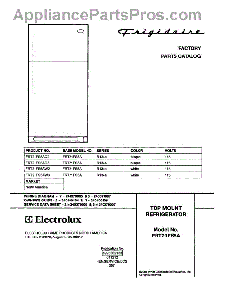 Parts for Frigidaire FRT21FS5AW2: 01 - Cover Parts