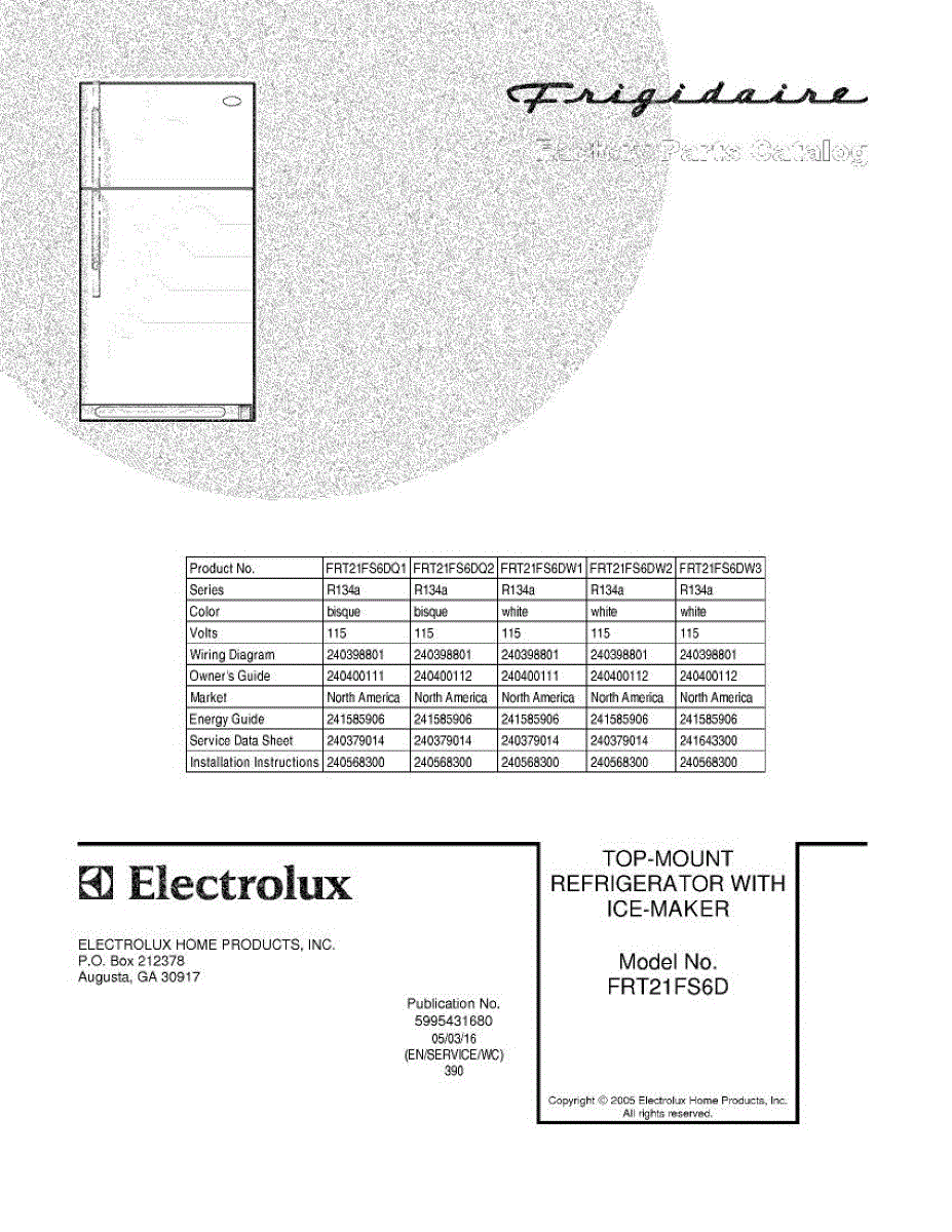 Parts for Frigidaire FRT21FS6DQ1: 01 - Cover Parts