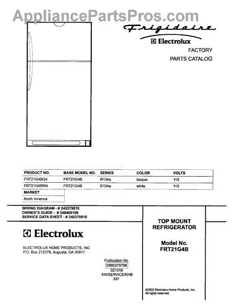 Parts for Frigidaire FRT21G4BQ4: 01 - Cover Parts