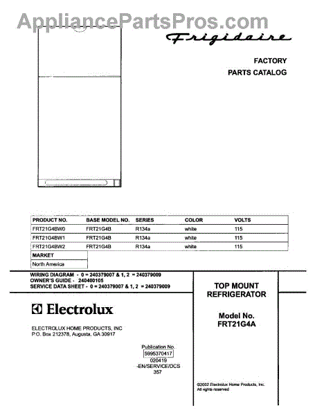 Parts for Frigidaire FRT21G4BW1: 01 - Cover Parts