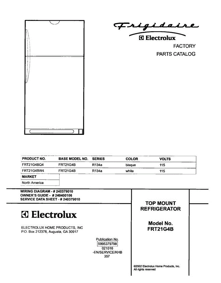 Parts for Frigidaire FRT21G4BW4: 01 - Cover Parts
