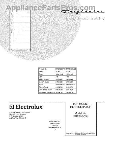 Parts for Frigidaire FRT21GC5JZ0: 01 - Cover Parts