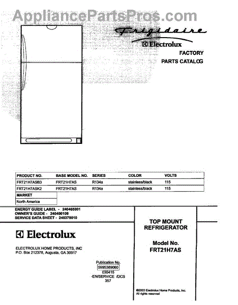 Parts for Frigidaire FRT21H7ASB3: 01 - Cover Parts