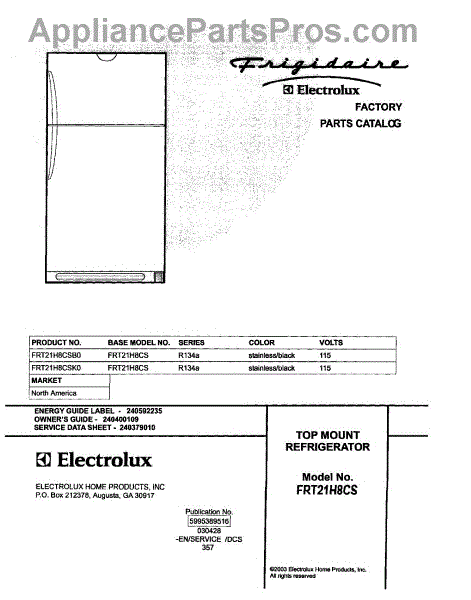 Parts for Frigidaire FRT21H8CSB0: 01 - Cover Parts
