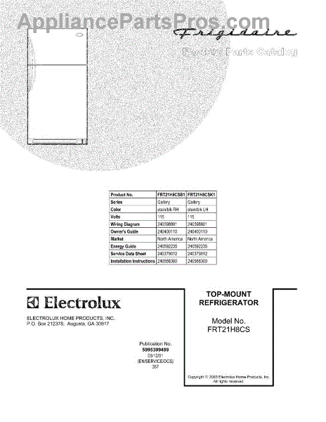 Parts for Frigidaire FRT21H8CSK1: 01 - Cover Parts