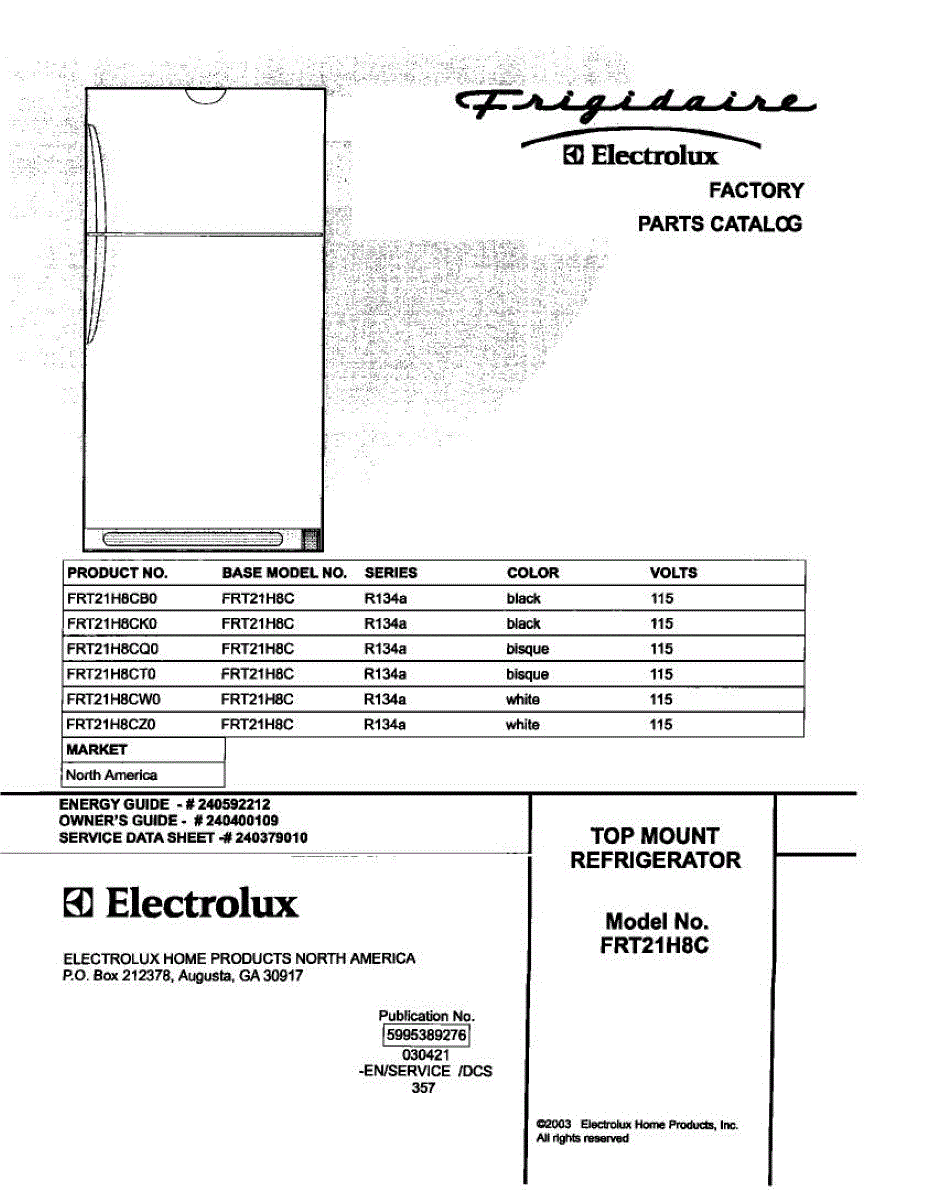 Parts for Frigidaire FRT21H8CT0: 01 - Cover Parts