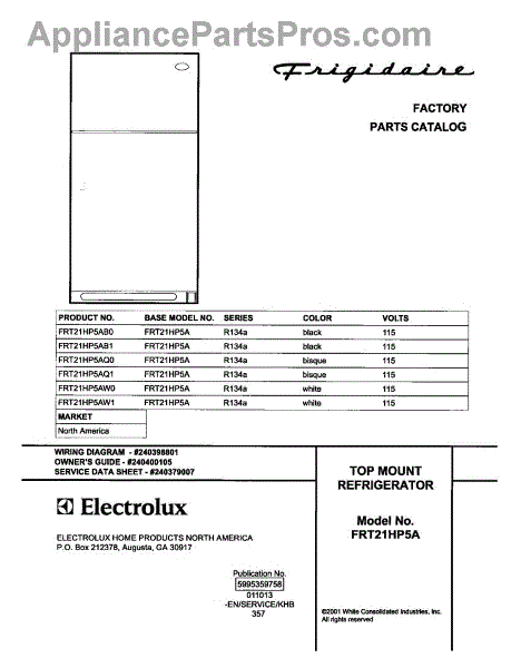 Parts for Frigidaire FRT21HP5AW0: 01 - Cover Parts