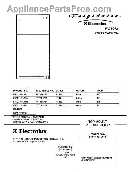 Parts for Frigidaire FRT21HP5AW4: 01 - Cover Parts