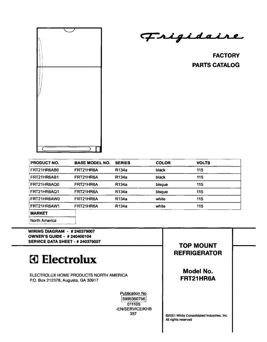 Parts for Frigidaire FRT21HR6AB1: 01 - Cover Parts