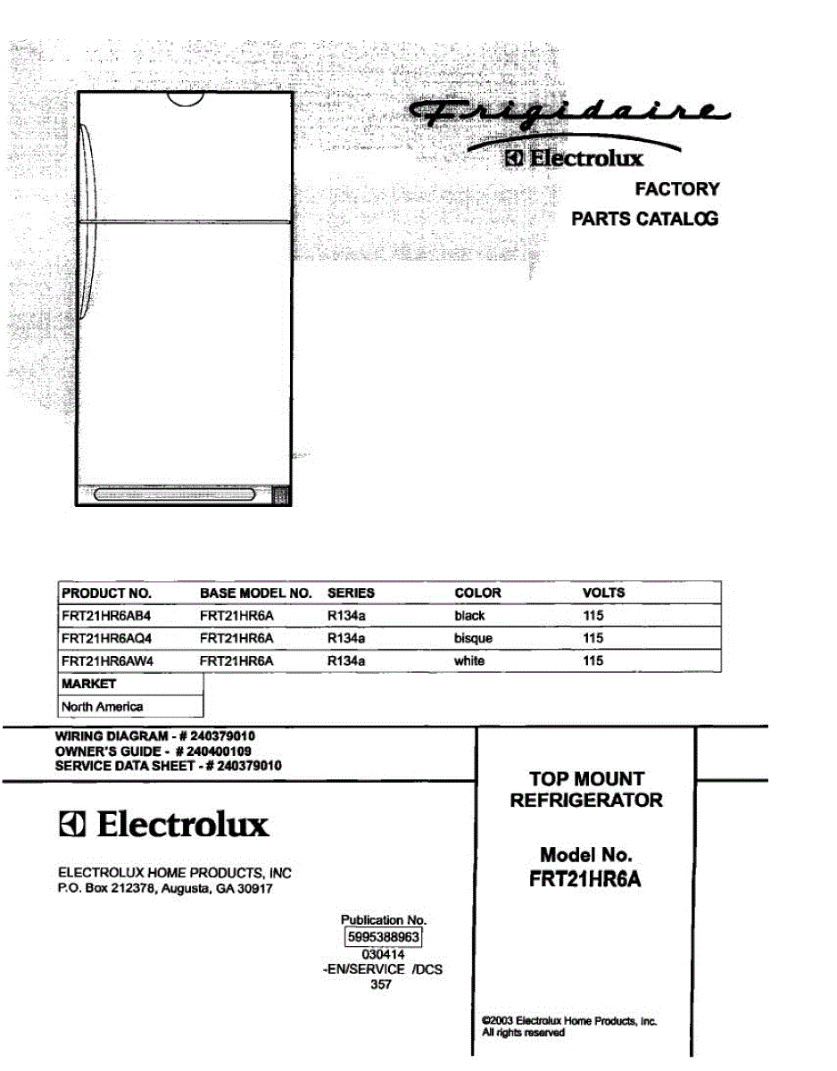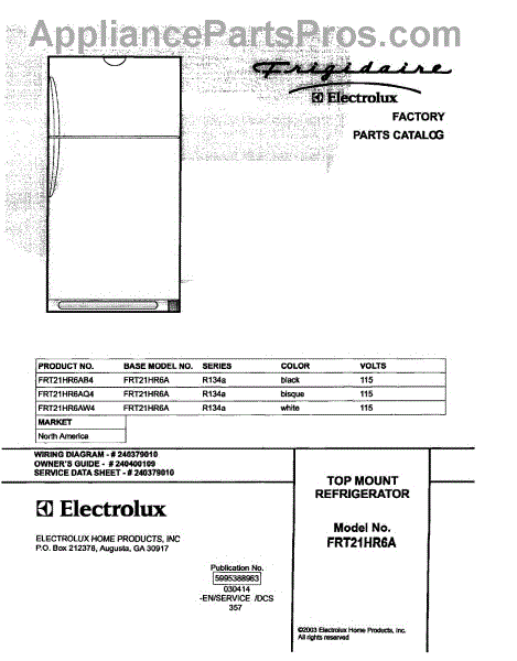 Parts for Frigidaire FRT21HR6AB4: 01 - Cover Parts