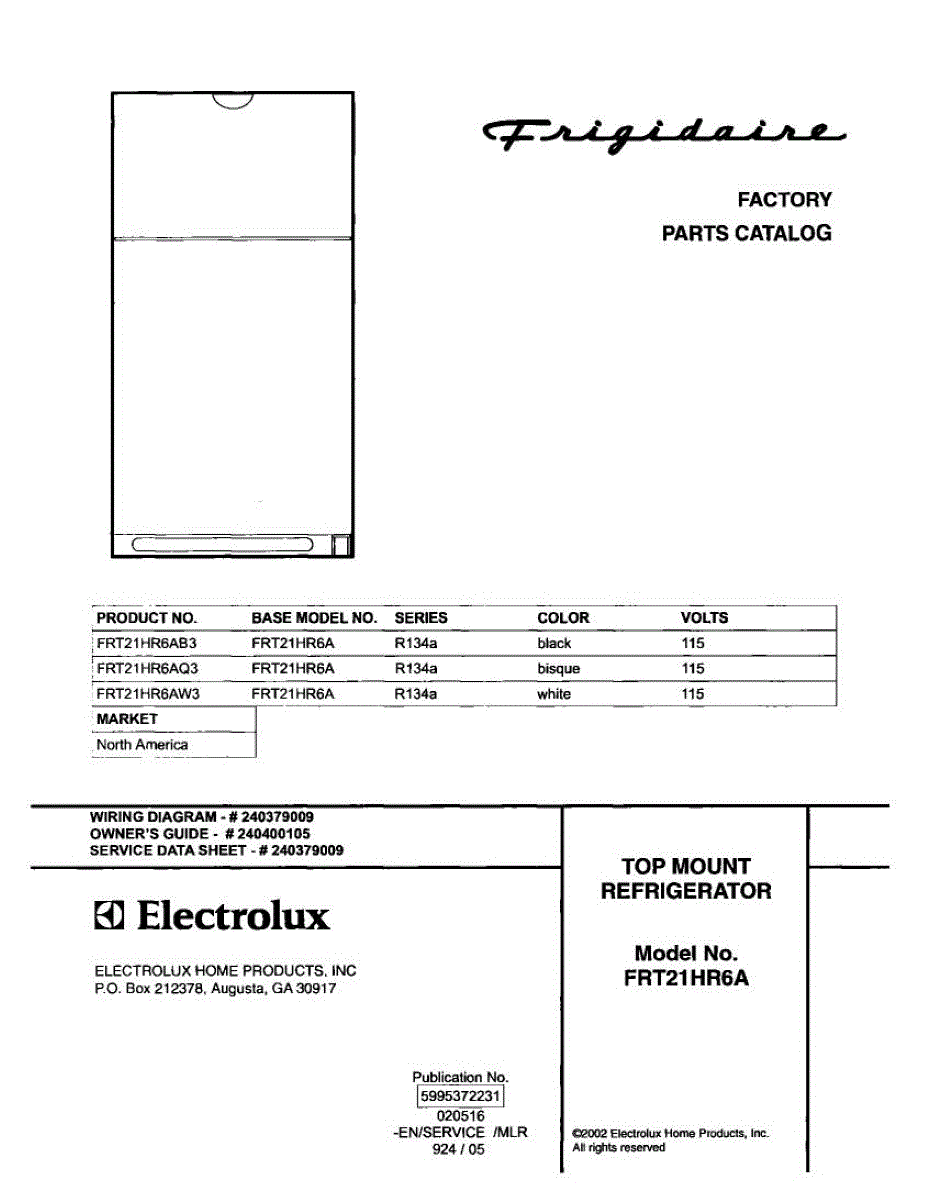 Parts for Frigidaire FRT21HR6AW3: 01 - Cover Parts