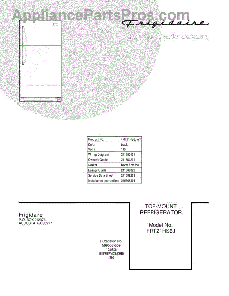 Parts for Frigidaire FRT21HS6JW1: 01 - Cover Parts