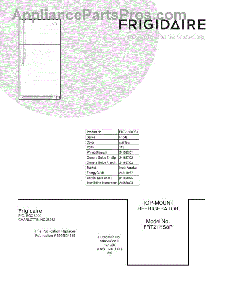 Parts for Frigidaire FRT21HS8PS1: 01 - Cover Parts