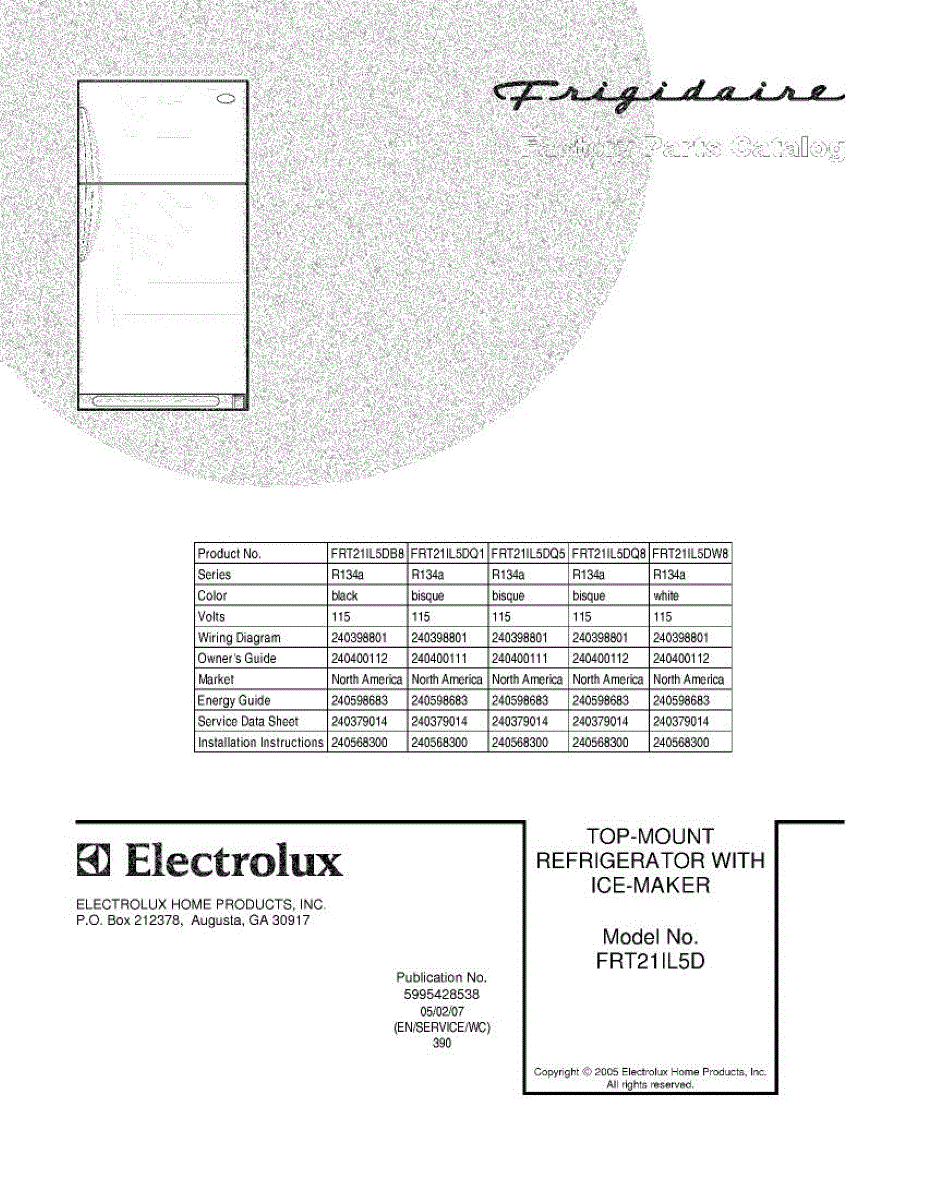 Parts for Frigidaire FRT21IL5DQ8: 01 - Cover Parts