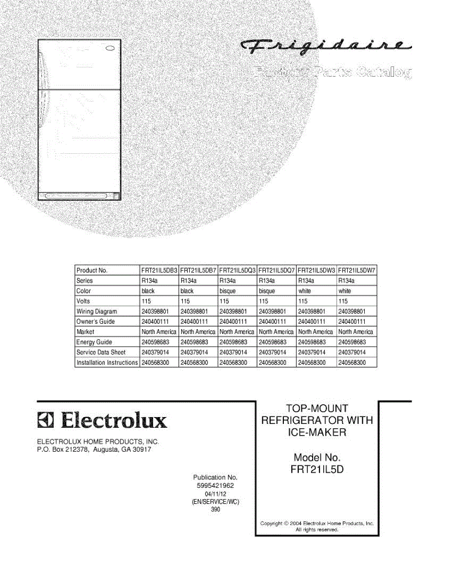 Parts for Frigidaire FRT21IL5DW3: 01 - Cover Parts