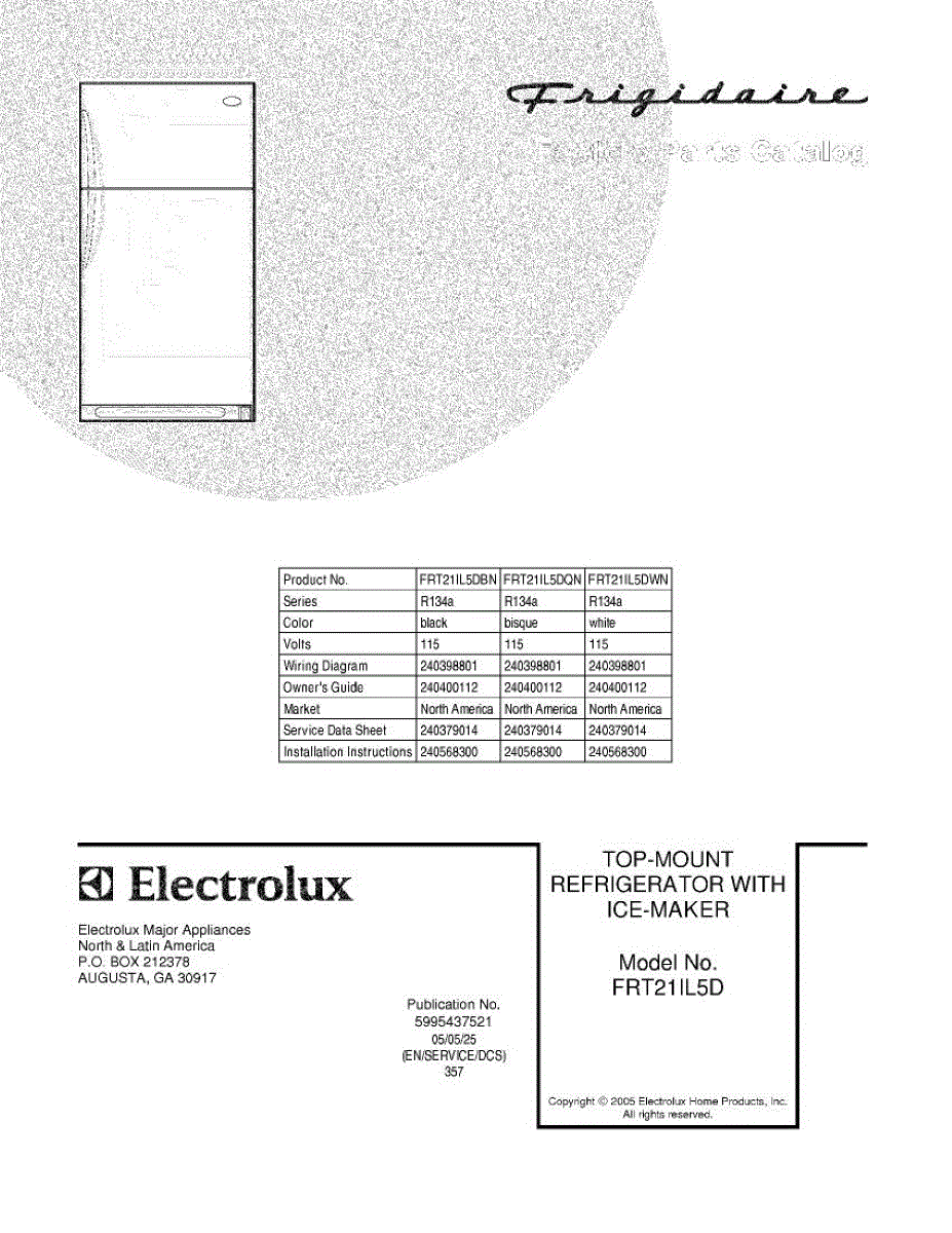 Parts for Frigidaire FRT21IL5DWN: 01 - Cover Parts