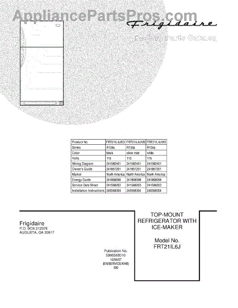 Parts for Frigidaire FRT21IL6JM3: 01 - Cover Parts