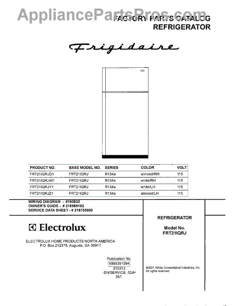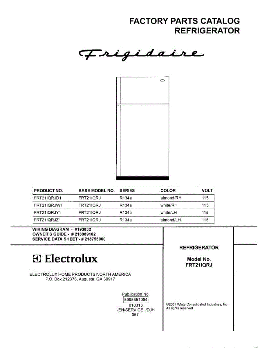 Parts for Frigidaire FRT21IQRJD1: 01 - Cover Parts