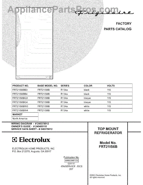 Parts for Frigidaire FRT21IS6BB3: 01 - Cover Parts
