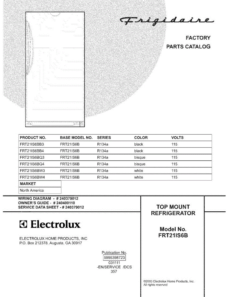 Parts for Frigidaire FRT21IS6BW4: 01 - Cover Parts