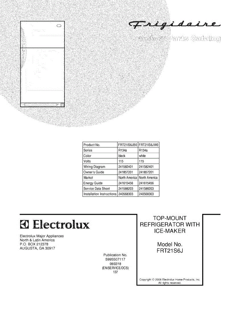 Parts for Frigidaire FRT21IS6JW0: 01 - Cover Parts
