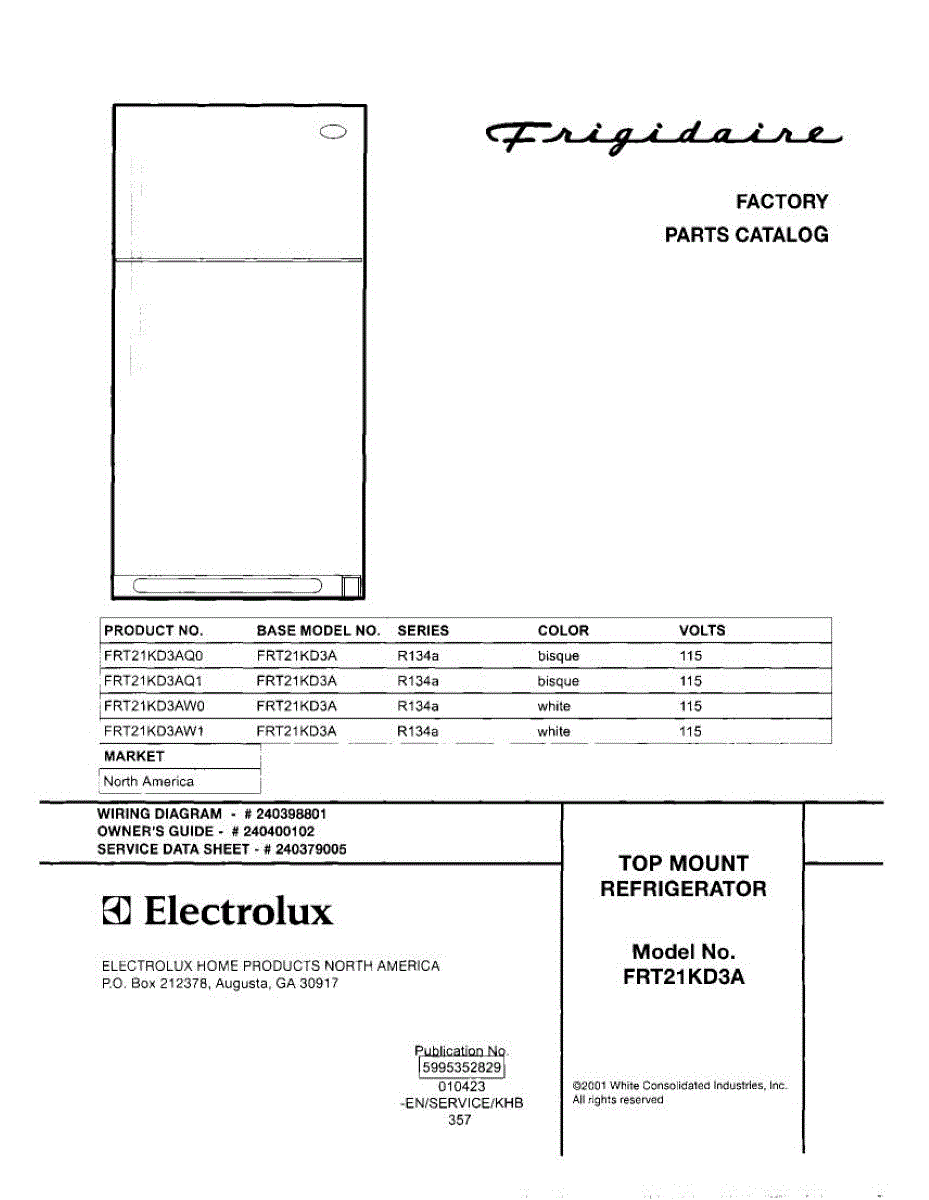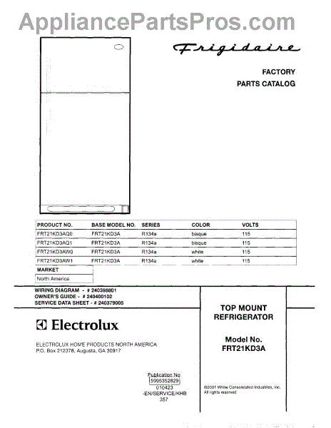 Parts for Frigidaire FRT21KD3AW1: 01 - Cover Parts