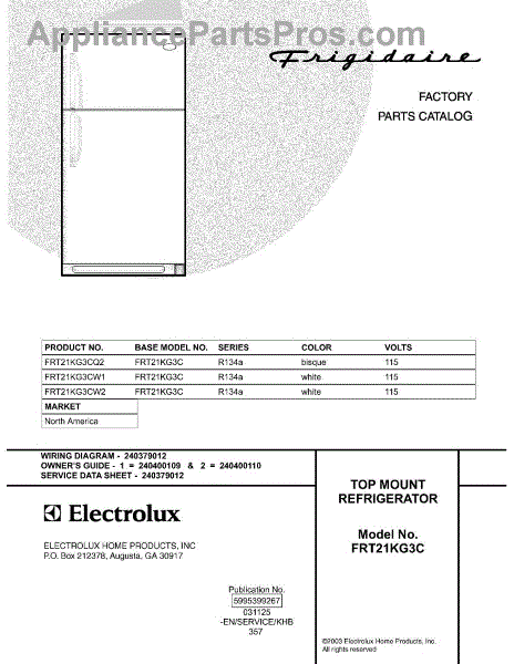 Parts for Frigidaire FRT21KG3CW1: 01 - Cover Parts