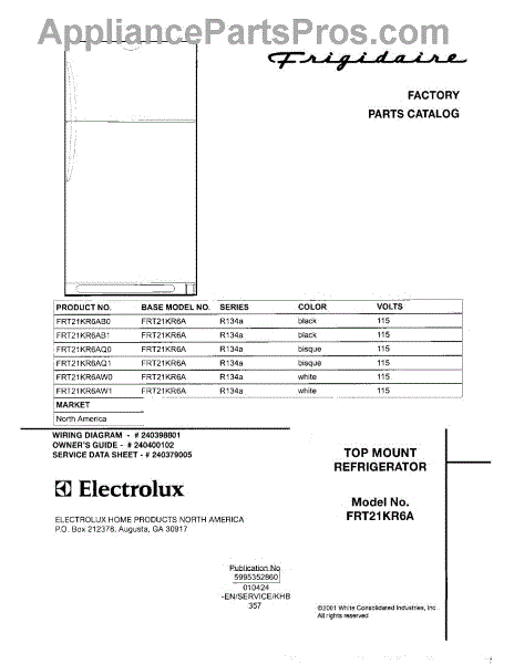 Parts for Frigidaire FRT21KR6AB1: 01 - Cover Parts