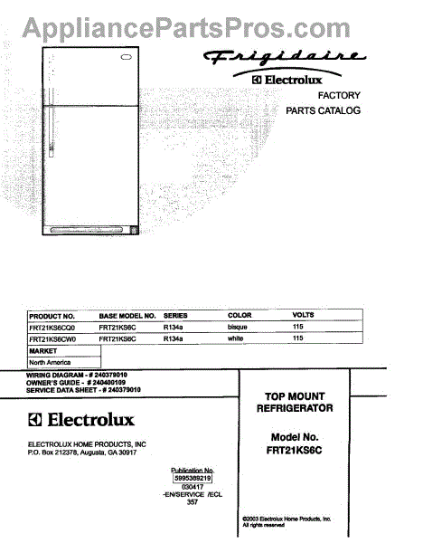 Parts for Frigidaire FRT21KS6CQ0: 01 - Cover Parts