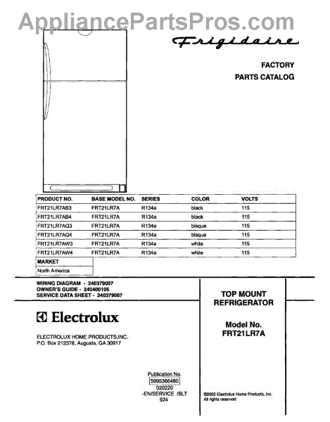 Parts for Frigidaire FRT21LR7AW3: 01 - Cover Parts