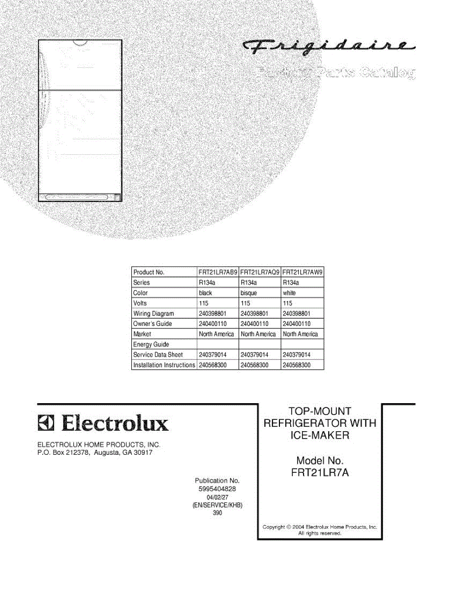 Parts for Frigidaire FRT21LR7AW9: 01 - Cover Parts