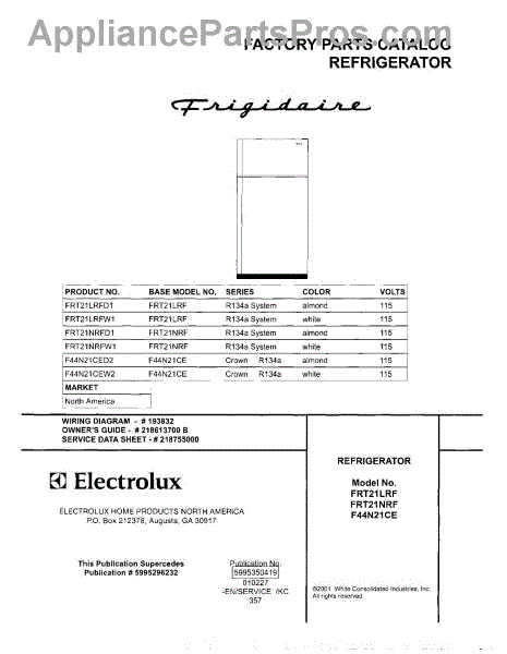 Parts for Frigidaire FRT21LRFD1: 01 - Cover Parts