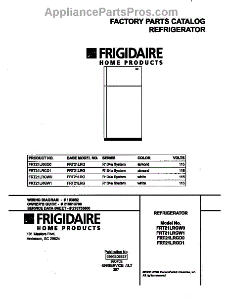 Parts for Frigidaire FRT21LRGD0: 01 - Cover Parts