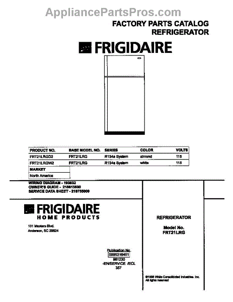 Parts for Frigidaire FRT21LRGD2: 01 - Cover Parts