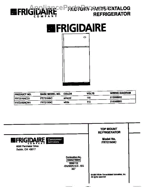 Parts for Frigidaire FRT21NNCW1: 01 - Cover Parts