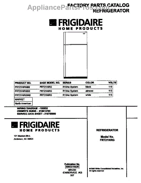 Parts for Frigidaire FRT21NRGB2: 01 - Cover Parts