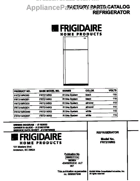 Parts for Frigidaire FRT21NRGD0: 01 - Cover Parts