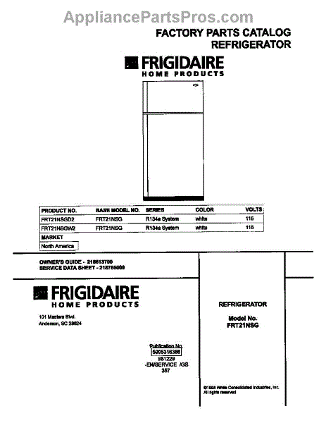 Parts for Frigidaire FRT21NSGD2: 01 - Cover Parts