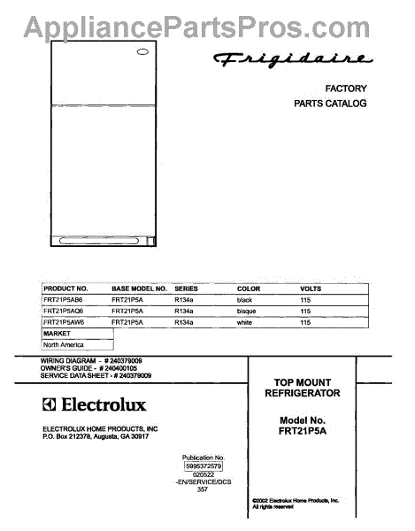 Parts for Frigidaire FRT21P5AB6: 01 - Cover Parts