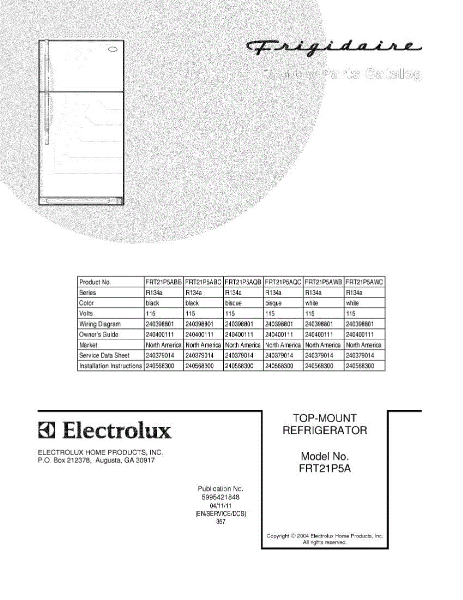 Parts for Frigidaire FRT21P5AQC: 01 - Cover Parts