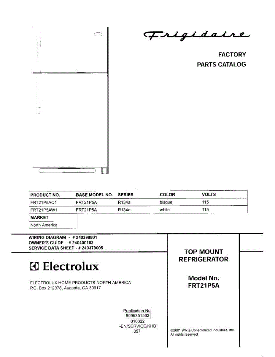 Parts for Frigidaire FRT21P5AW1: 01 - Cover Parts