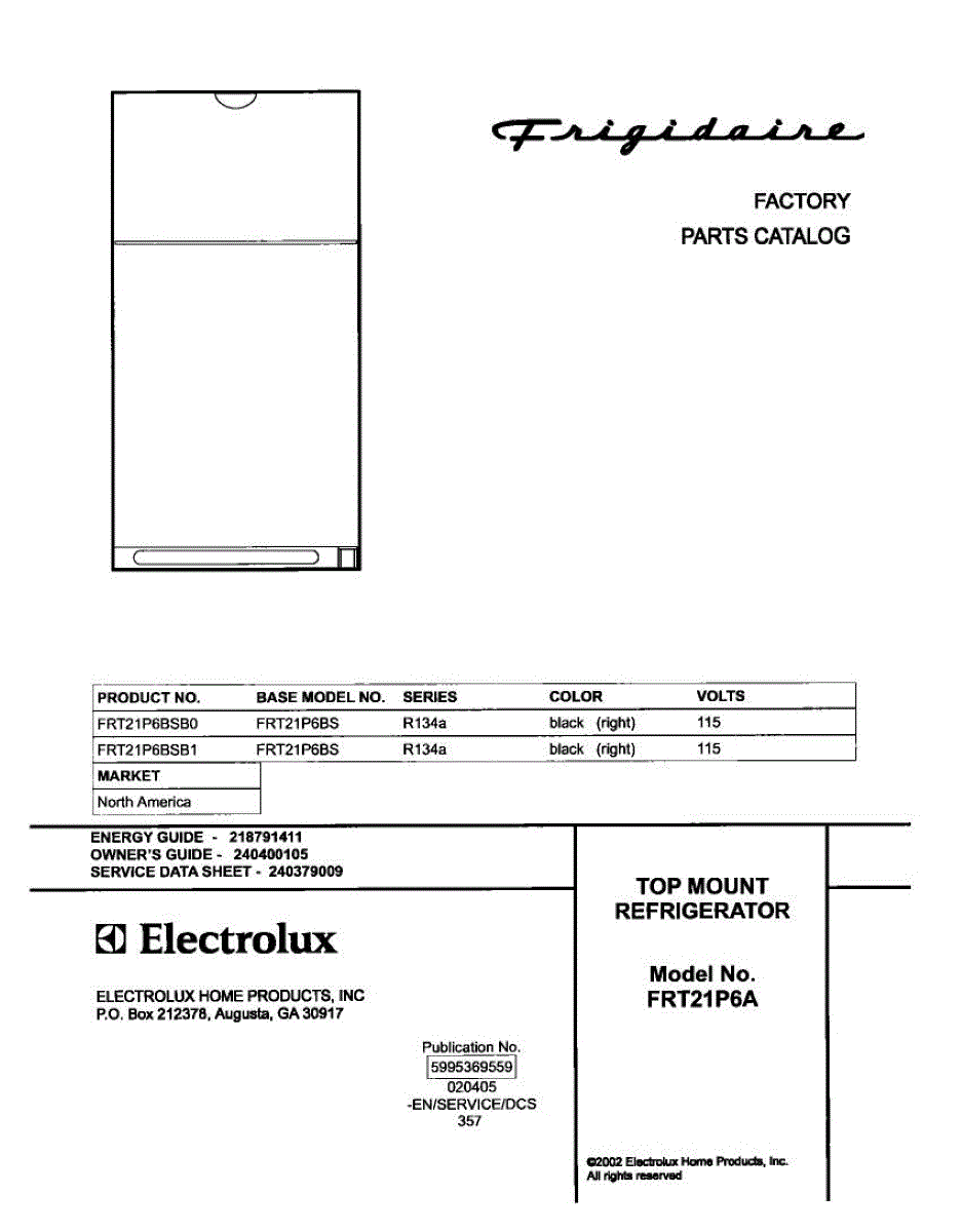 Parts for Frigidaire FRT21P6BSB0: 01 - Cover Parts