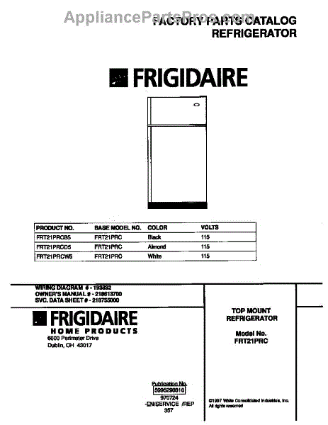 Parts for Frigidaire FRT21PRCB5: 01 - Cover Parts
