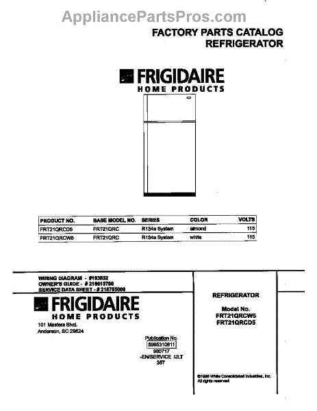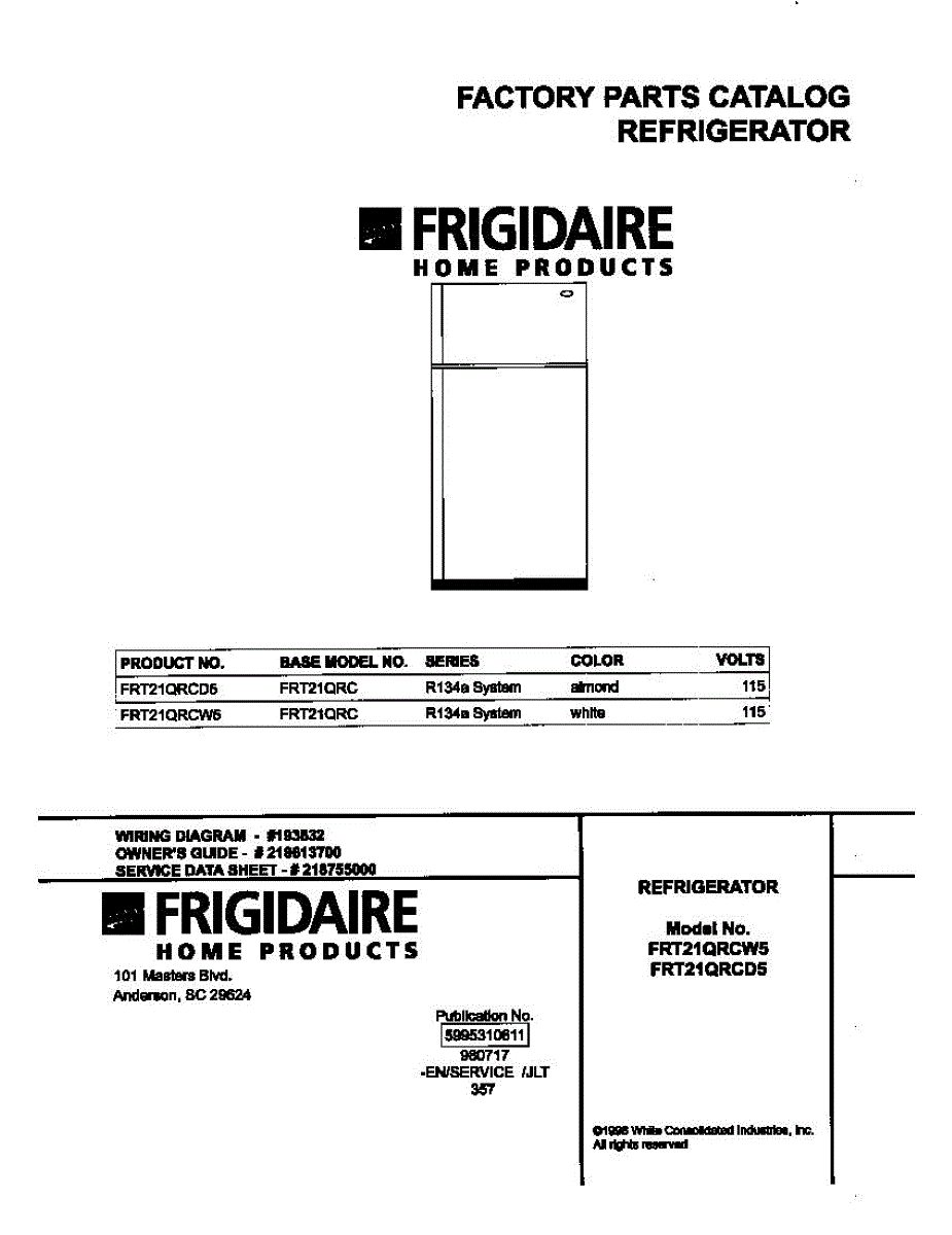 Parts for Frigidaire FRT21QRCW5: 01 - Cover Parts